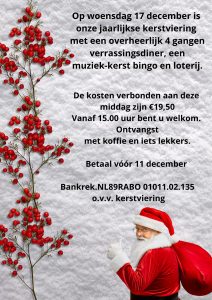 Op woensdag 17 december is onze jaarlijkse kerstviering.